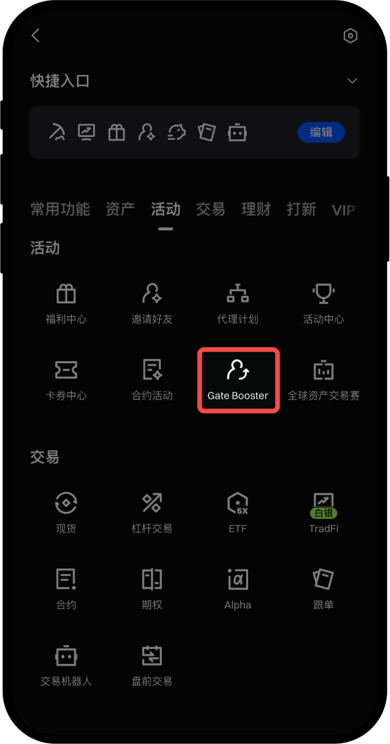 第 1 步:进入Gate Booster页面