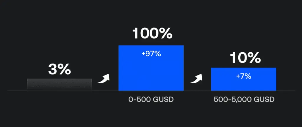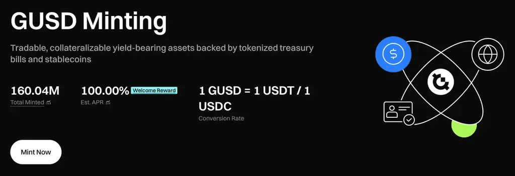 从本质来看,GUSD 是用户透过 USDT 或 USDC 铸造后所获得的收益凭证,代表链上资产或代币化资产的权益,但并不对应任何实体资产的直接所有权。赎回时将按 1:1 比例转换回 USDT 或 USDC(需扣除相关费用)。整体收益率会依市场环境及相关资产回报动态调整。